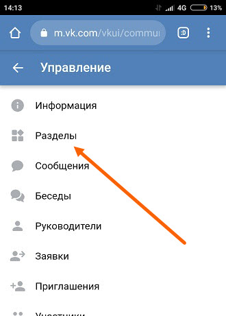 6. Возвращаемся на главную страницу группы, и жмём на кнопку «Меню».