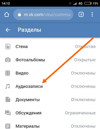 4. Открываем «Аудиозаписи», по умолчанию они отключены.