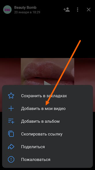 5. Жмём на строчку «Добавить в мои видео», отмеченную плюсом.