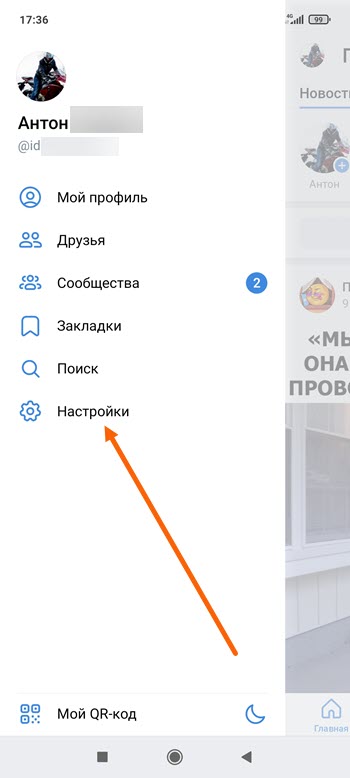 2. Далее переходим в «Настройки».