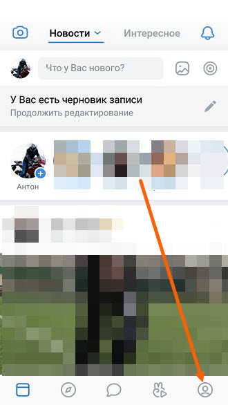 7. Теперь нам нужно зайти в приложение «ВК», дале нажать два раза на кнопку «Аккаунт».