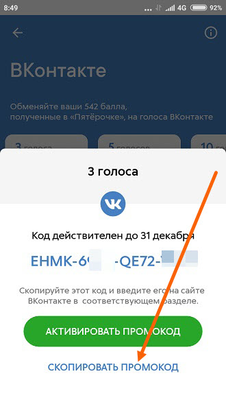 Как обменять баллы Пятёрочки на Голоса в ВК