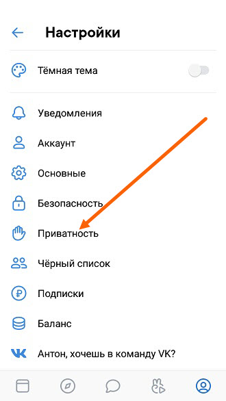 Здесь нам нужно воспользоваться настройками приватности, а делается это следующим образом.