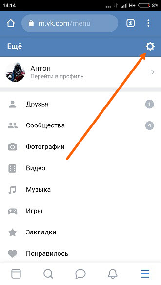 2. И уже из меню, жмём на шестерёнку.