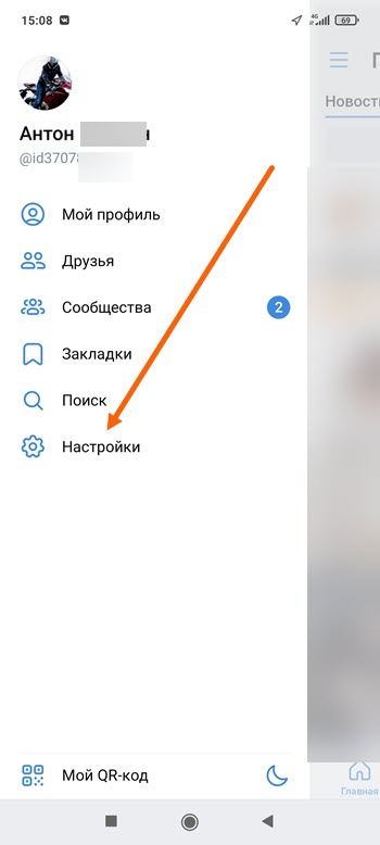 2. Переходим в настройки.