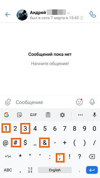1. Заходим в нужный диалог, и переводим раскладку клавиатуры на цифры и символы.