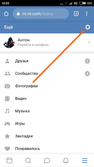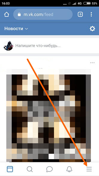 1. Открываем ВК далее переходим в меню.