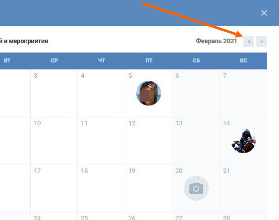 3. В этом календаре указаны дни рождения друзей и мероприятия, чтобы открыть нужный месяц, воспользуйтесь кнопками вперёд и назад.
