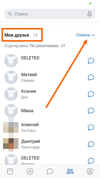 2. Прокручиваем страницу в низ, до пункта «Мои друзья», после жмём на ссылку «Списки».