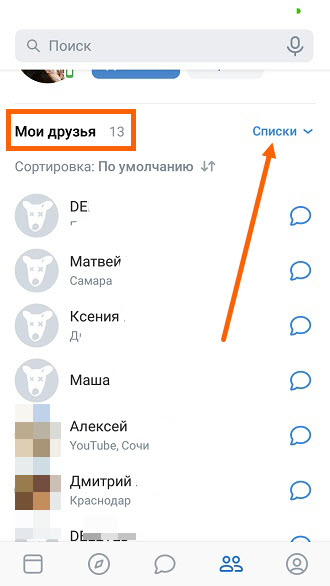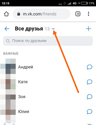 2. С права от заголовка «Все друзья», находится синяя галочка, жмём на неё.