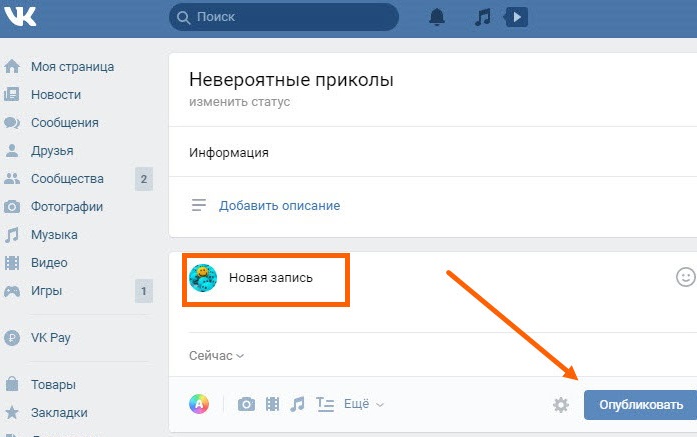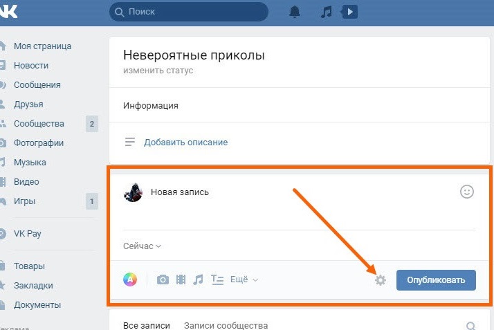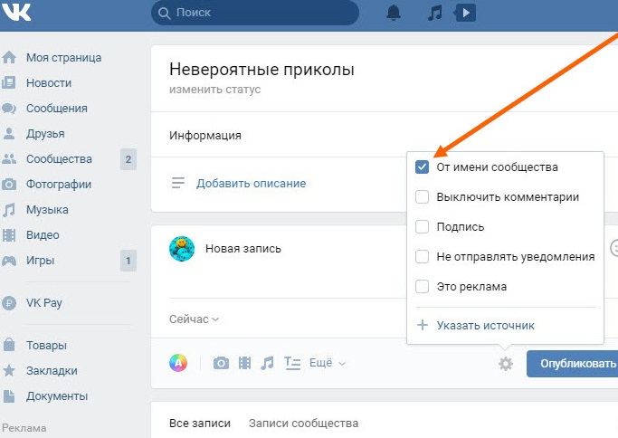 Как опубликовать запись от имени сообщества ВКонтакте