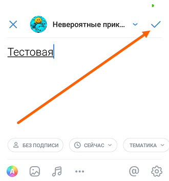 4. Нажимаем на галочку в правом углу, для того чтобы опубликовать запись.
