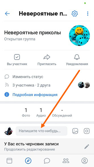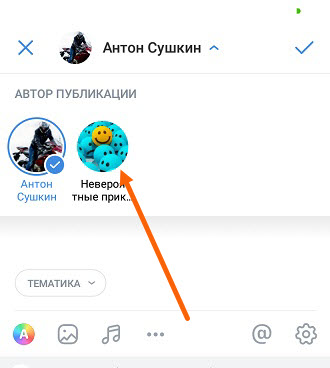 3. Иконка с моим изображением, изменилась на иконку группы, остаётся опубликовать запись.
