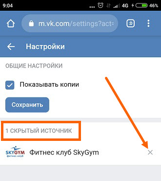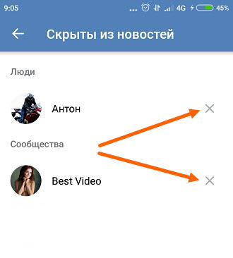 Убираем новости друга или группы из ленты