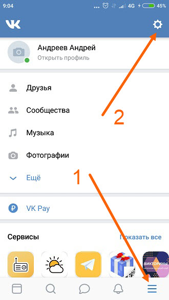 1. Открываем меню, нажав на значок «Три горизонтальные полоски»(правый нижний угол), далее переходим в настройки.