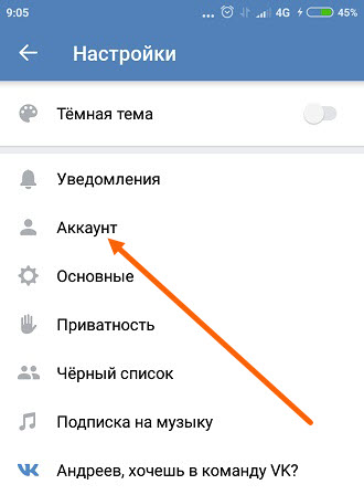2. В настройках переходим в пункт «Аккаунт».