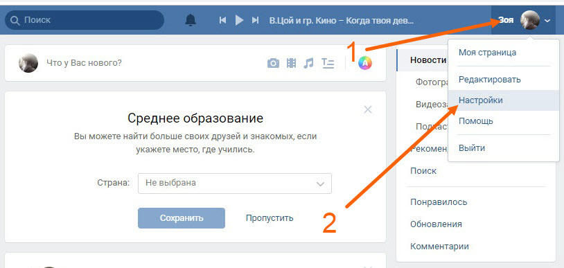 1. Открываем ВК на компьютере, далее переходим в настройки.