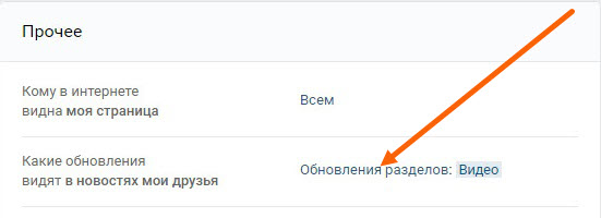 3. В самом низу приватных настроек, находим раздел «Прочее», в нём имеется пункт «Какие обновления видят в новостях мои друзья», по умолчанию он имеет значение «Все обновления», жмём на эту ссылку.