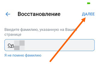 5. Прописываем фамилию, указанную на странице, после жмём «Далее».