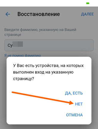 6. В открывшемся окне, спрашивается, «У вас есть устройства, на которых выполнен вход на указанную страницу?» . Жмём нет.