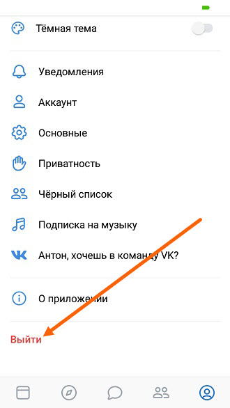 Выходим из аккаунта