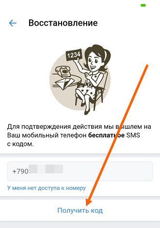 7. Пишем свой номер телефона, после жмём кнопку «Получить код».
