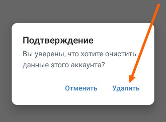 7. В предупредительном окне, находится следующий текст: «Вы уверены, что хотите очистить данные этого аккаунта?» (Логин и пароль, сохранённые в приложении).