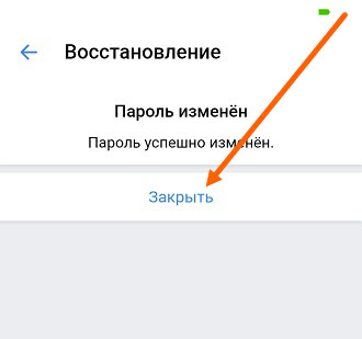 10. Должно придти сообщение, что пароль успешно изменён, жмём кнопку «Закрыть».