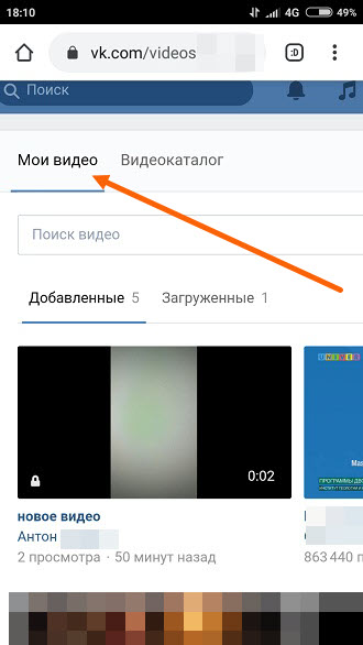 5. Жмём на подраздел «Мои видео».
