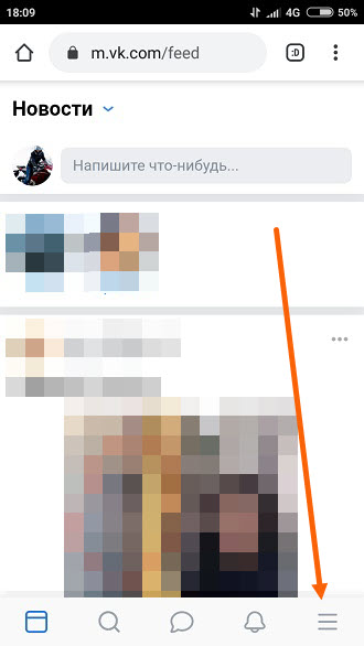 1. Заходим в мобильную версию ВКонтакте, с любого браузера установленного на телефоне, не путайте с приложением.