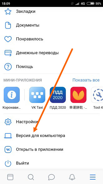 2. В самом низу меню, жмём на пункт «Версия для компьютера».