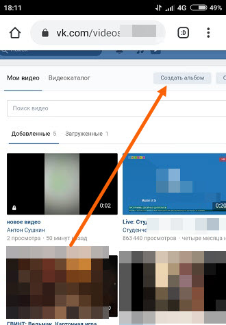 Как создать альбом в ВК видео с телефона