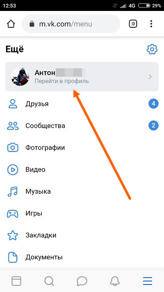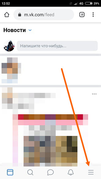 1. Открываем мобильную версию ВК, далее жмём на кнопку «Меню».