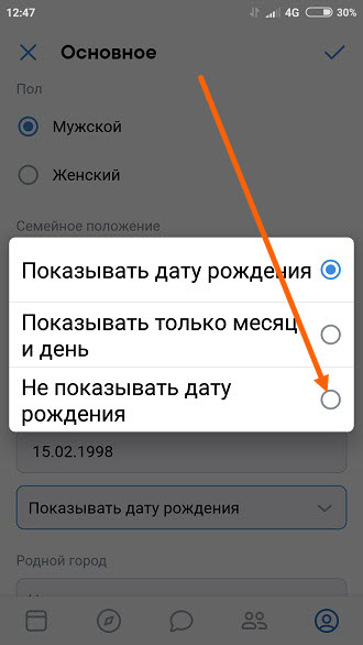 Чтобы скрыть день своего рождения, не надо прибегать к каким-то хитростям, или сторонним программам.