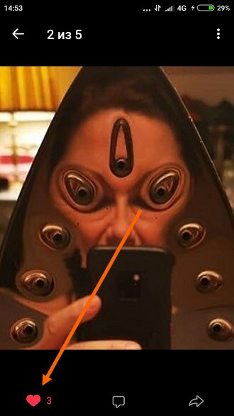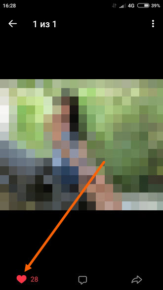 6. Снимаем лайк, нажав на розовое сердечко, после чего данное фото удалится.