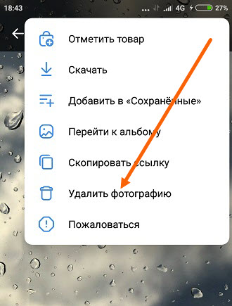 3. В выпавшем меню, жмём на пункт «Удалить фотографию«.