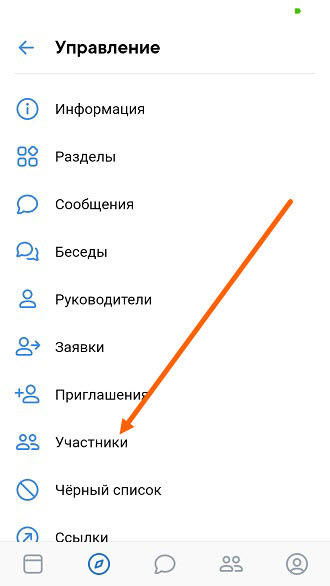 2. Переходим в раздел «Участники».