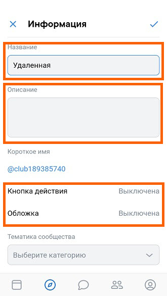 3. Меняем название группы, удаляем описание, выключаем кнопку действия и обложку.