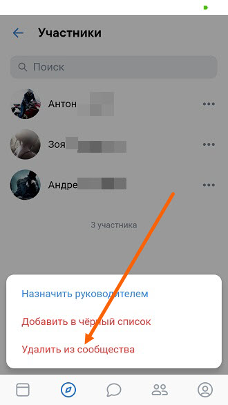 5. Проделываем эту же процедуру со всеми участниками, если в группе имеются дополнительные администраторы, их необходимо разжаловать и также удалить.