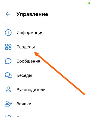 Отключаем все разделы сообщества