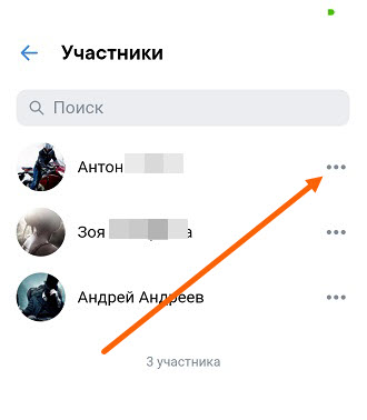 3. На против выбранного участника жмём на кнопку «Три горизонтальных точки».