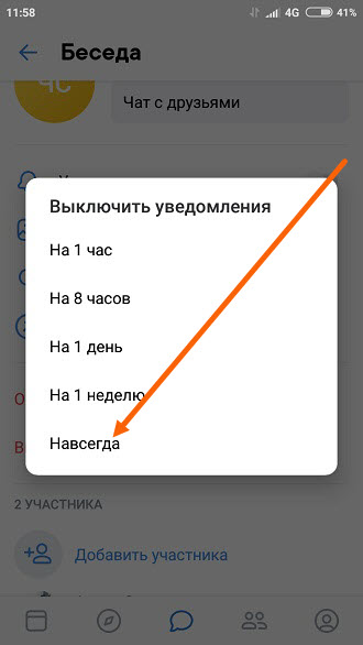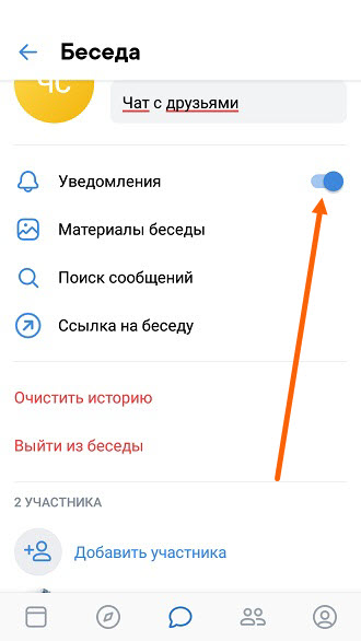 Как отключить уведомления беседы ВК