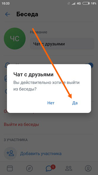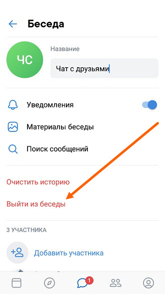 Как выйти из беседы в ВК