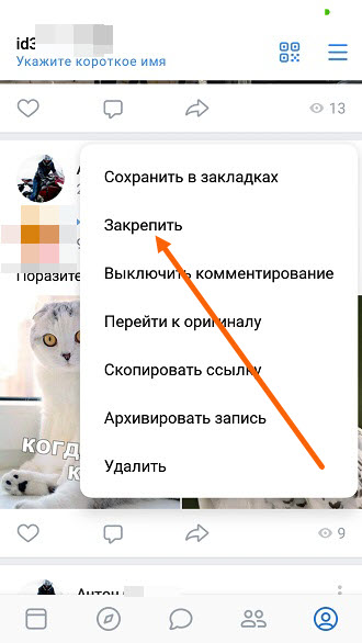 3. Переходим к себе на страницу, и закрепляем пост.