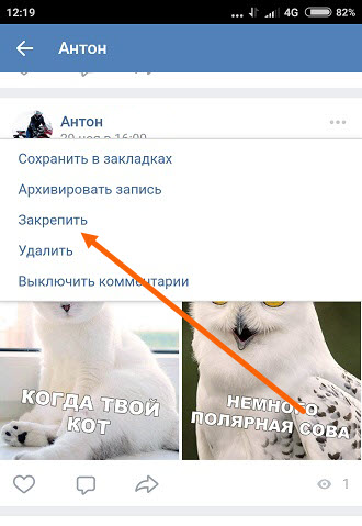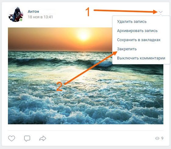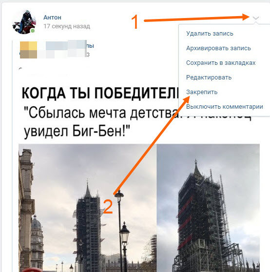 Как закрепить запись на стене в ВКонтакте