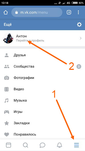 1. Открываем мобильную версию ВКонтакте, в любом браузере на телефоне, далее переходим на свою страницу.
