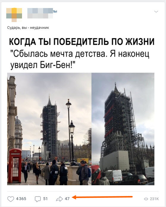 1. Находим подходящую запись, и делаем её репост, нажав на стрелочку.