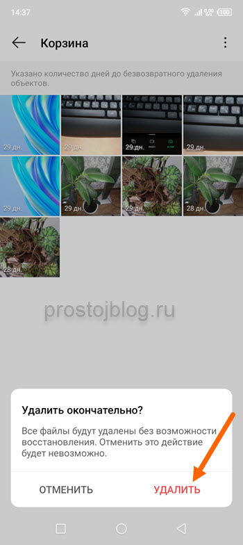 4. Вот мы и на месте, на каждом файле указано количество дней, до полного удаления из внутренней памяти.