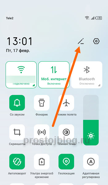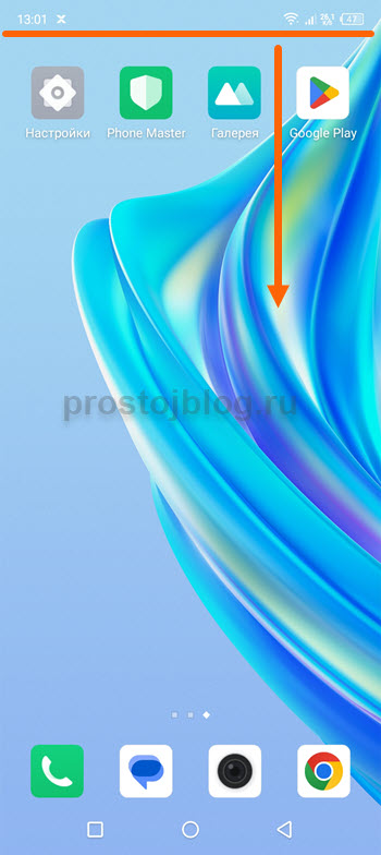 1. Опускаем шторку движением пальца вниз, в правой части экрана.