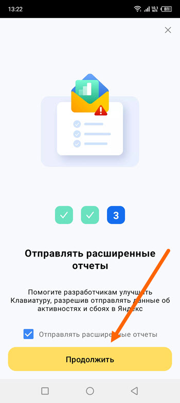 10. Если хотите помочь разработчикам в виде отчётов, оставляйте галочку, если нет снимите.